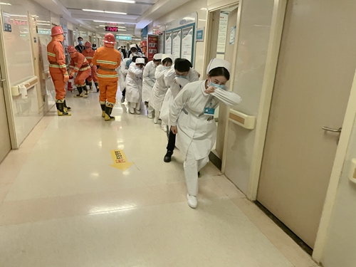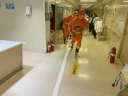 此次主要對(duì)重點(diǎn)科室、施工工地、庫(kù)房等消防安全重點(diǎn)部位,人員值守、設(shè)施運(yùn)行、燃?xì)獍踩惹闆r進(jìn)行檢查,并在臨床科室開展一次消防演練。