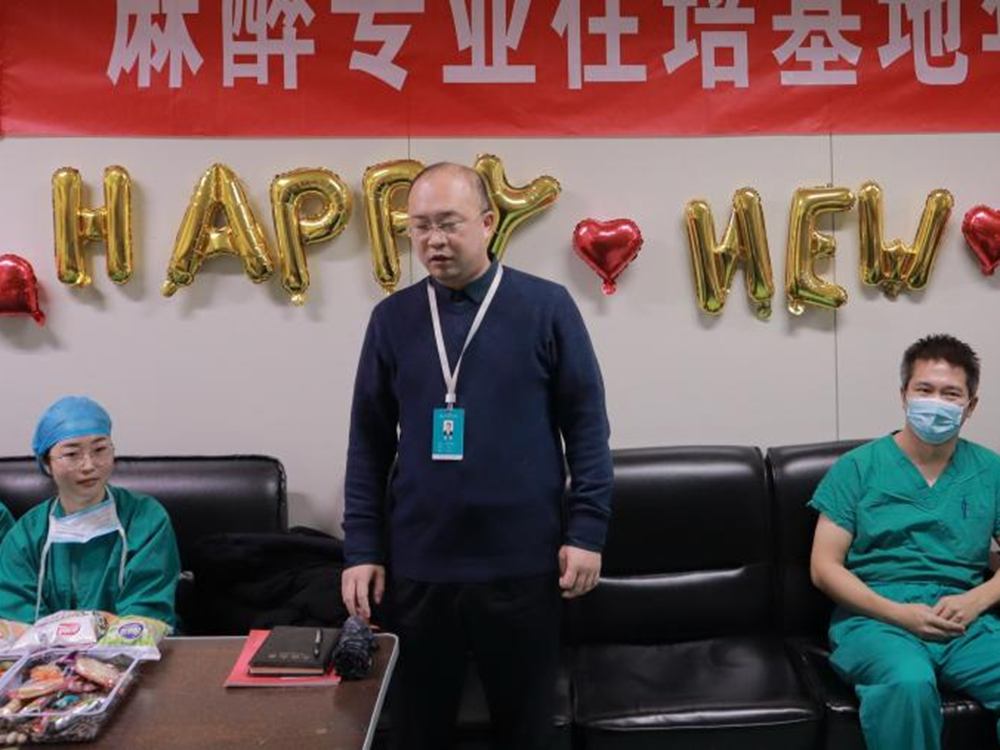 醫(yī)院教學管理科科長楊揚在致辭中對麻醉住培基地給予肯定,希望同學們在即將到來的三次重要考試中取得優(yōu)異的成績。