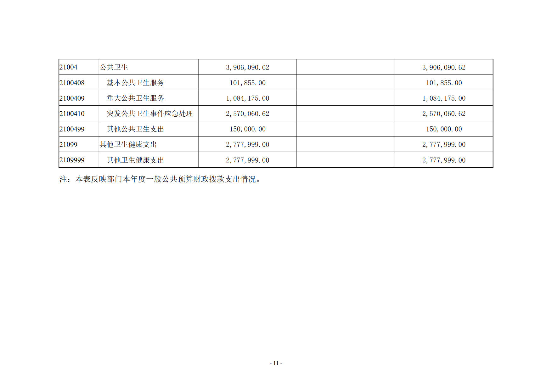 5.衛(wèi)生健康支出(類)公共衛(wèi)生(款)基本公共衛(wèi)生服務(wù)(項(xiàng))。年初預(yù)算為6.6萬元,支出決算為10.19萬元,完成年初預(yù)算的154.39%。決算數(shù)與年初預(yù)算數(shù)存在差異的主要原因是本年支出中使用的有上年度結(jié)轉(zhuǎn)資金。