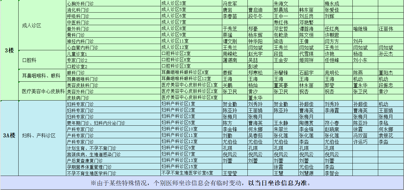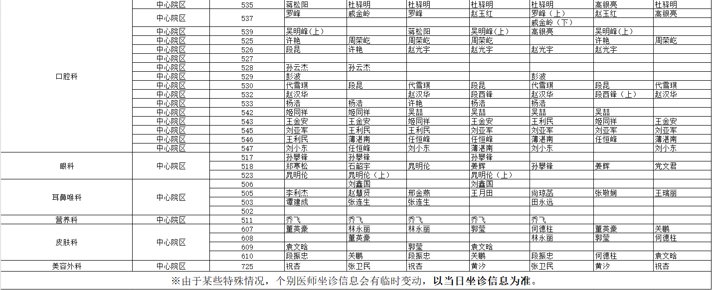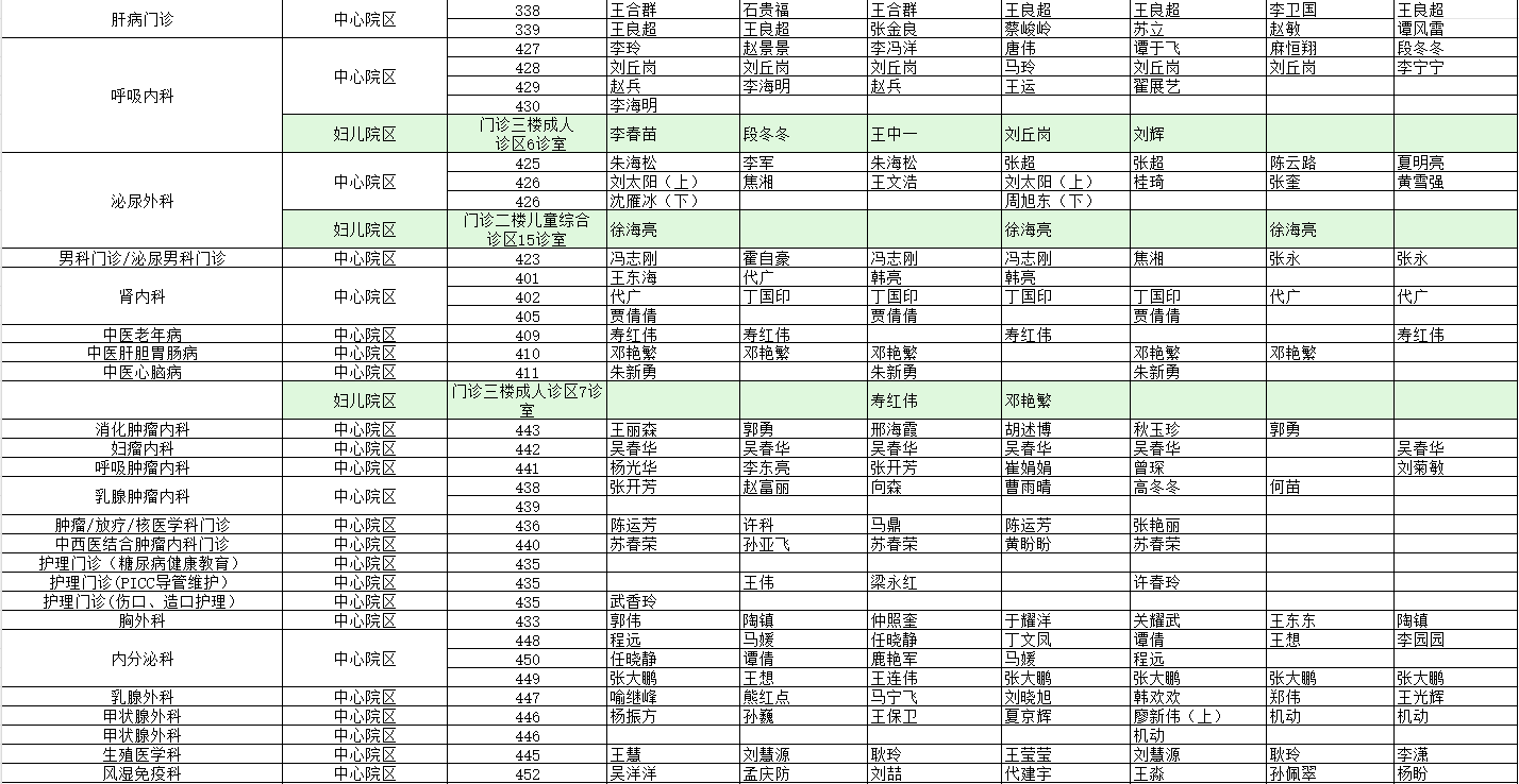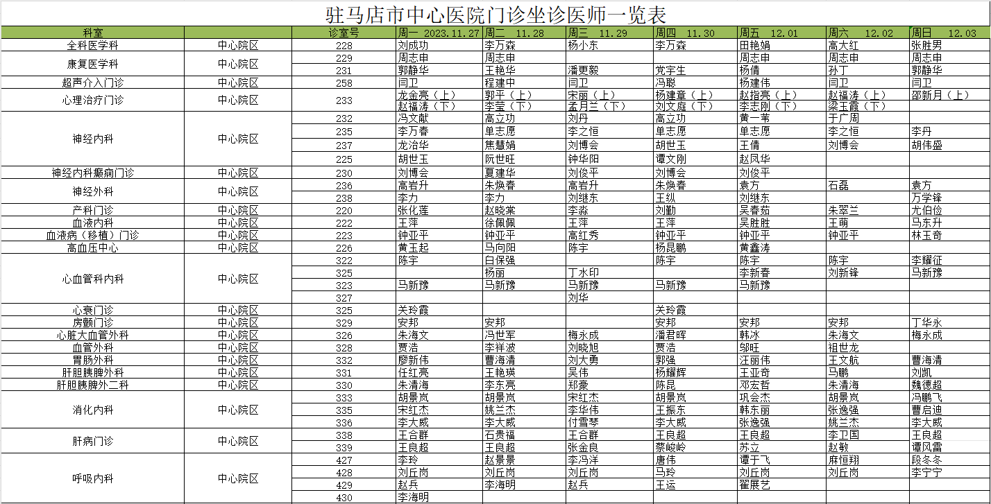 駐馬店市中心醫(yī)院門診坐診信息一覽表(含婦兒院區(qū))