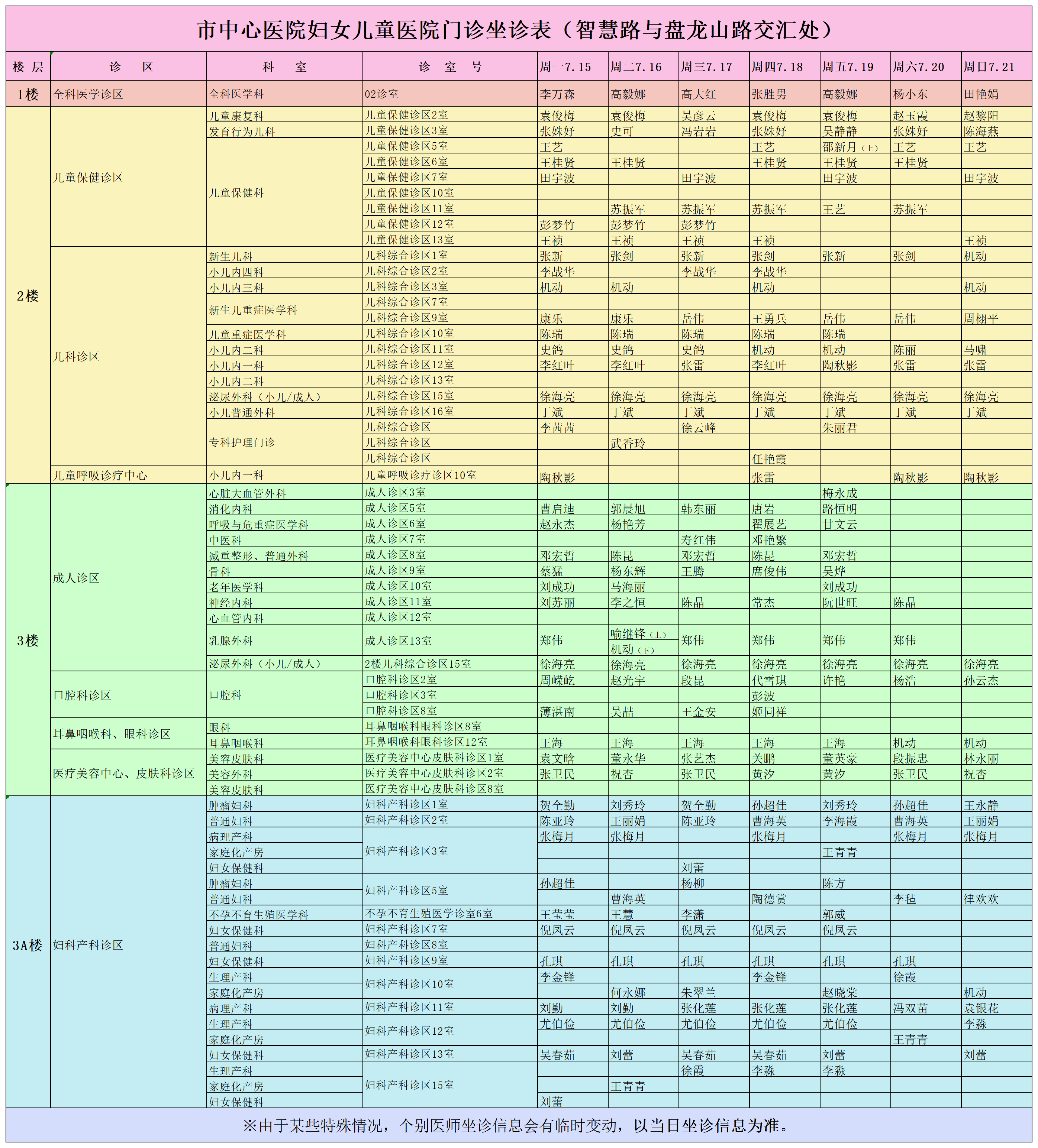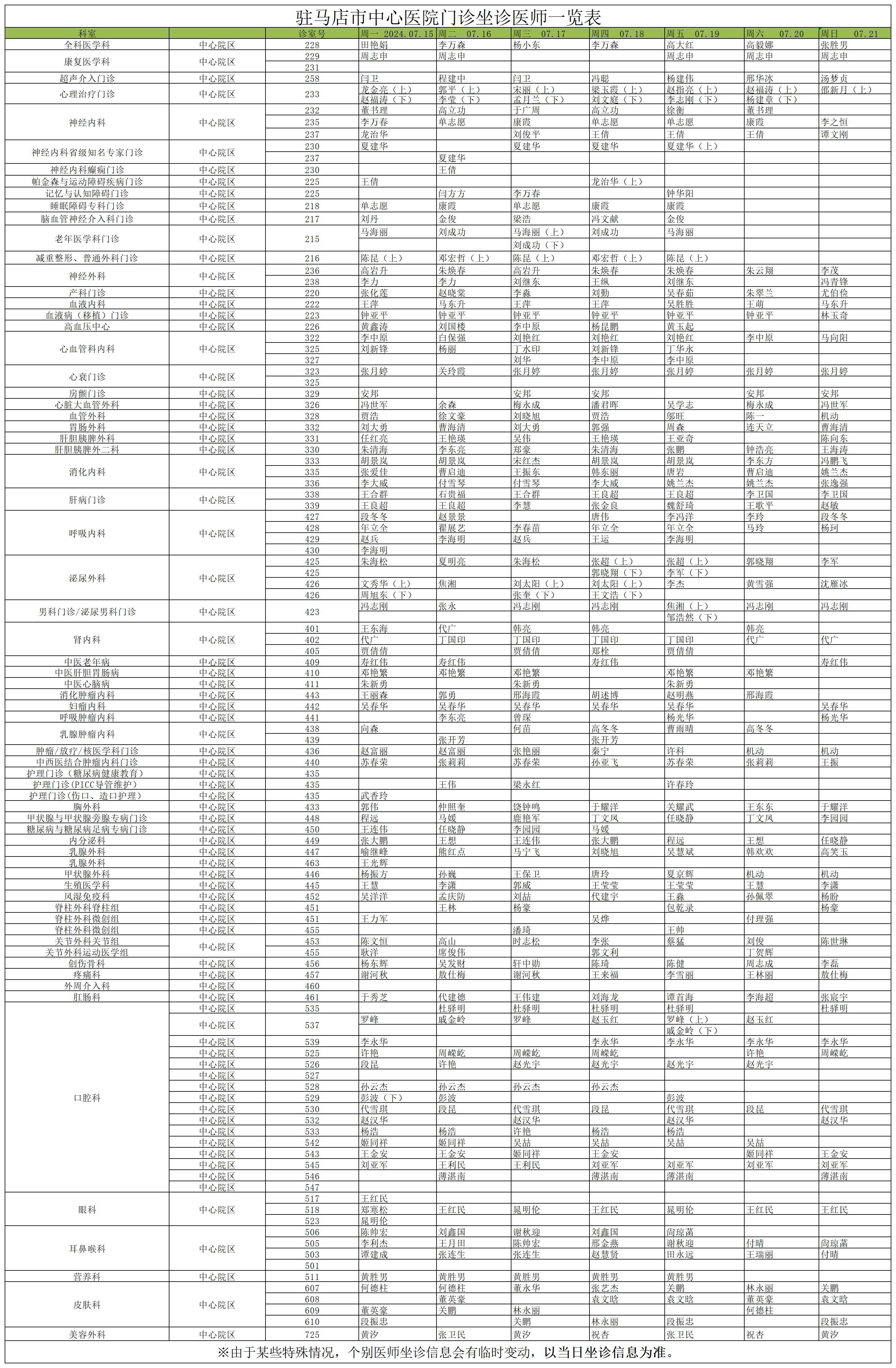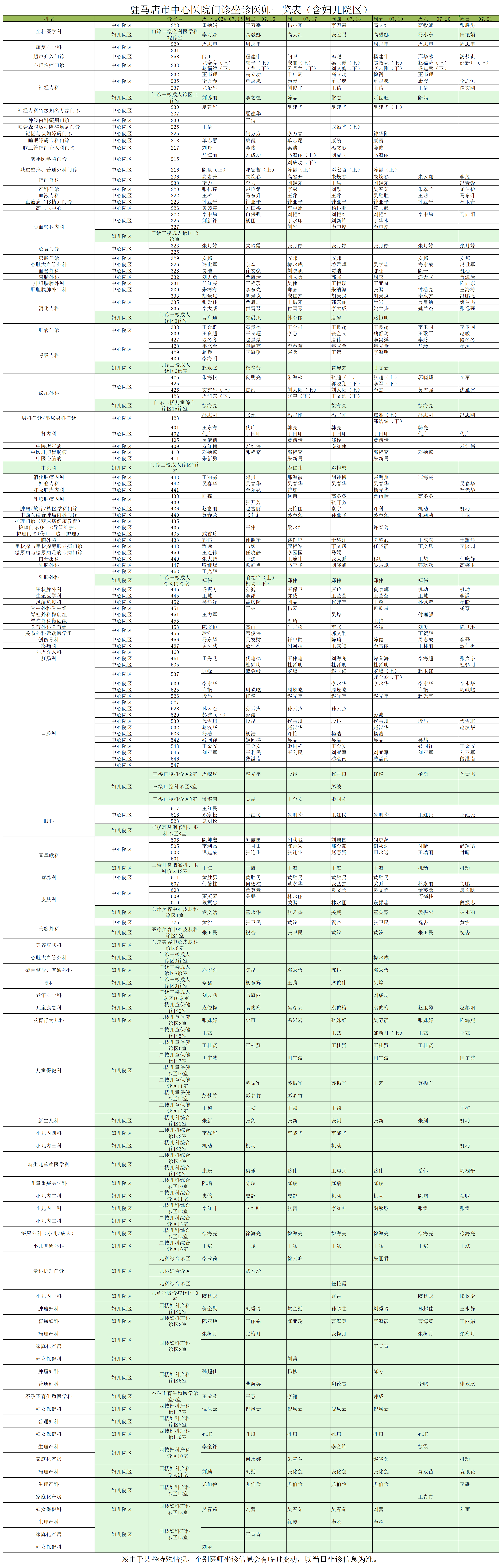 駐馬店市中心醫(yī)院門(mén)診坐診信息一覽表(含婦兒院區(qū))