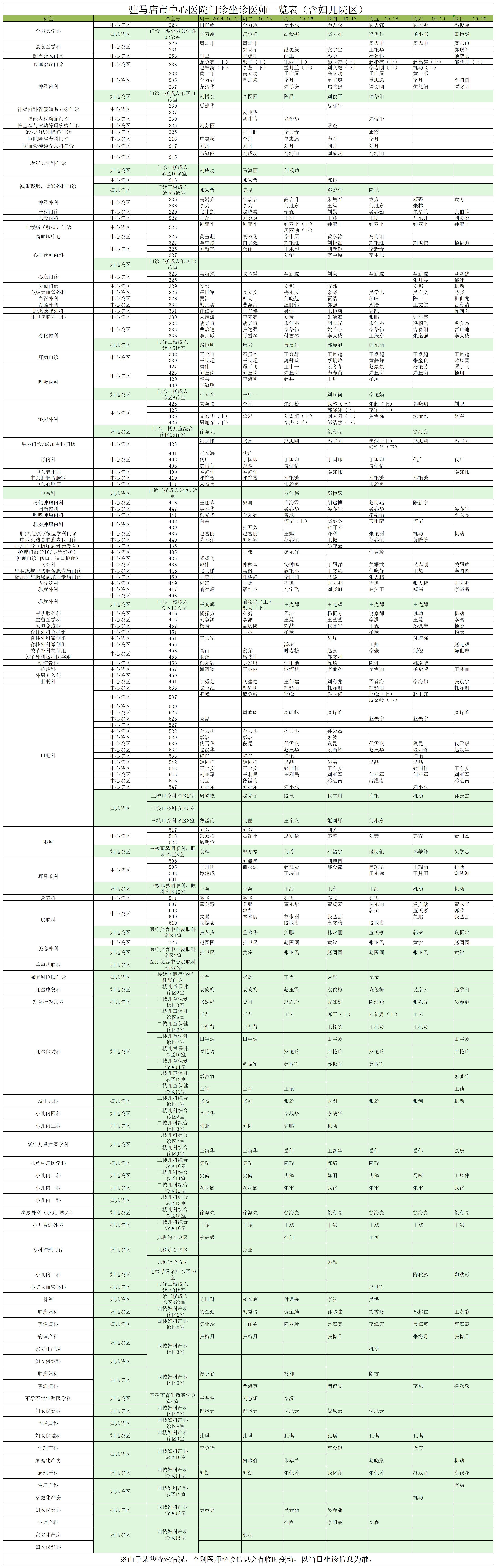 駐馬店市中心醫(yī)院門診坐診信息一覽表(含婦兒院區(qū))