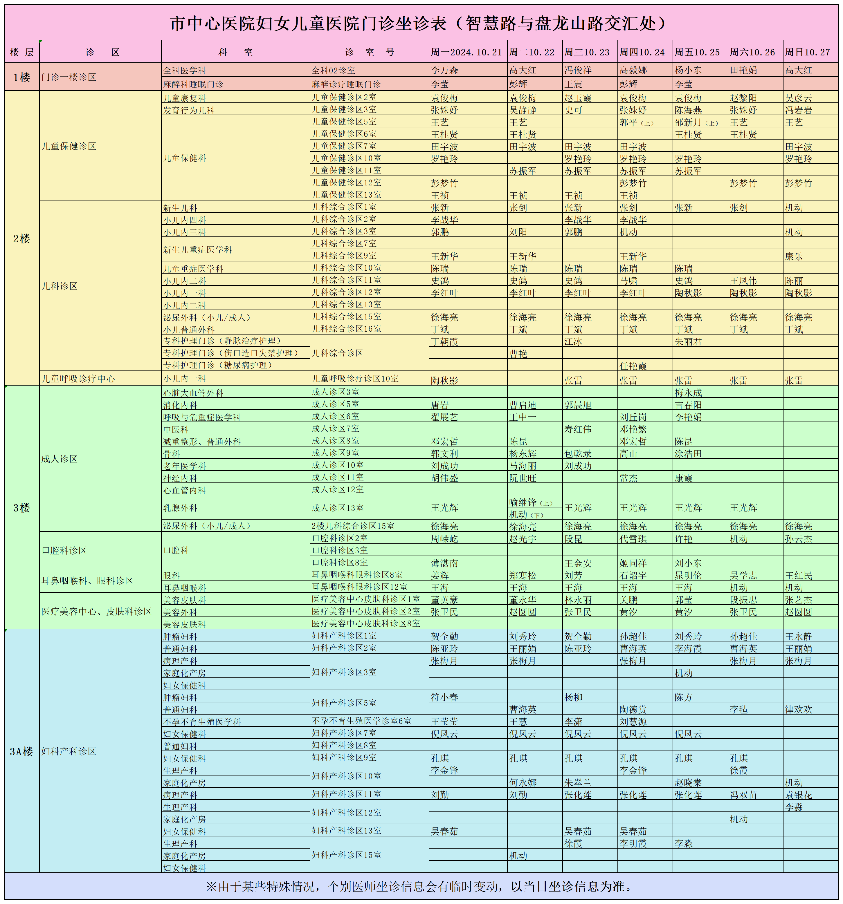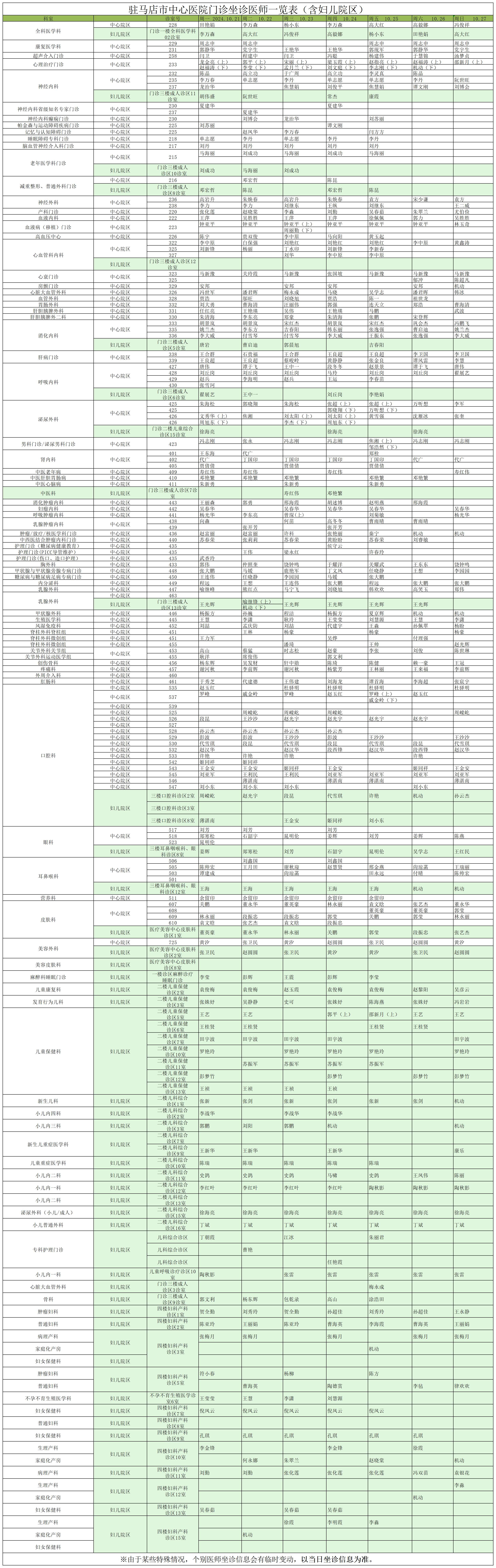 駐馬店市中心醫(yī)院門診坐診信息一覽表(含婦兒院區(qū))