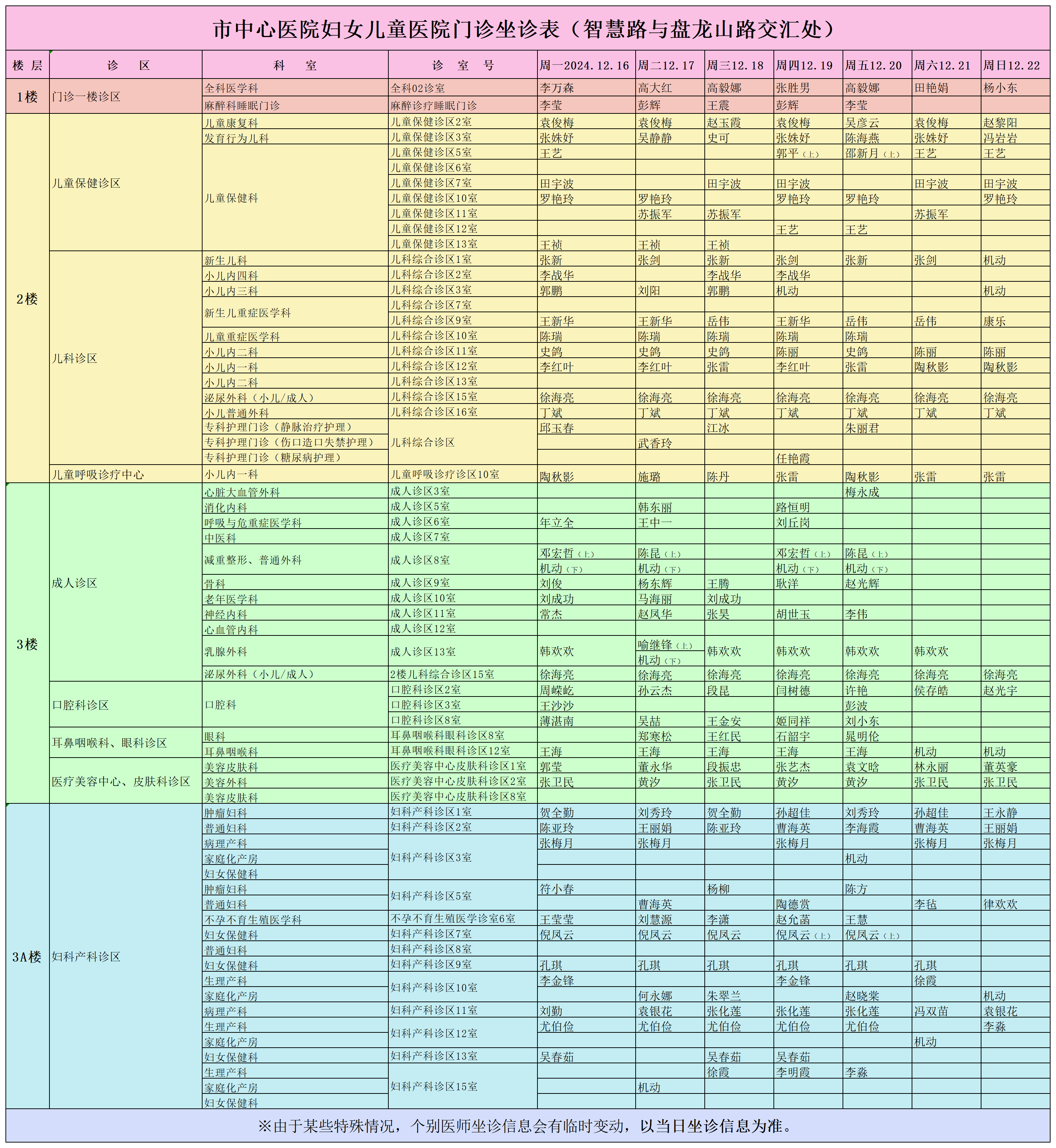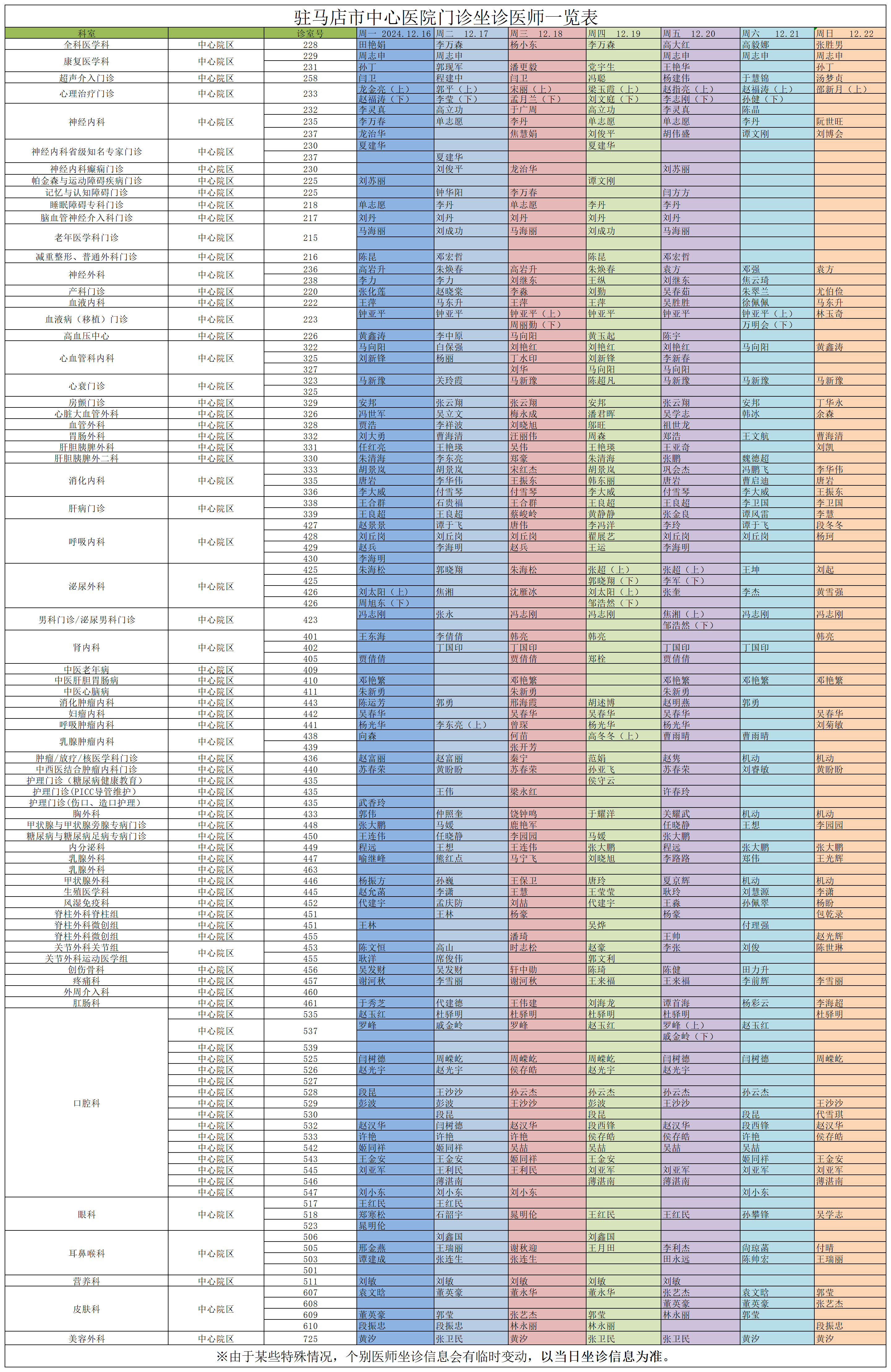 駐馬店市中心醫(yī)院門診坐診信息一覽表(含婦兒院區(qū))